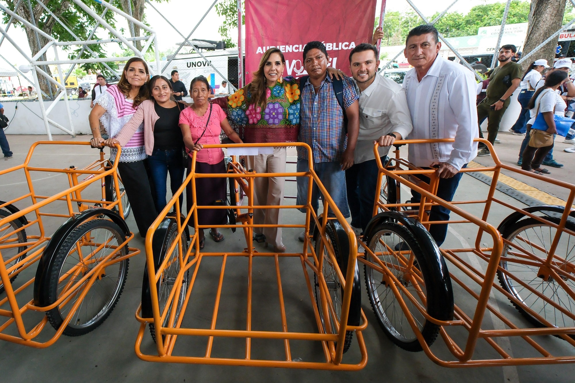 Diez mujeres de Vallehermoso, Piedras Negras y San Román, de Bacalar, recibieron sus máquinas de coser para que puedan tener mas ingresos a través del autoempleo, en tanto que Teresa Martínez, Catrina Pascual y Abel Vargas obtuvieron sus triciclos para trabajar.