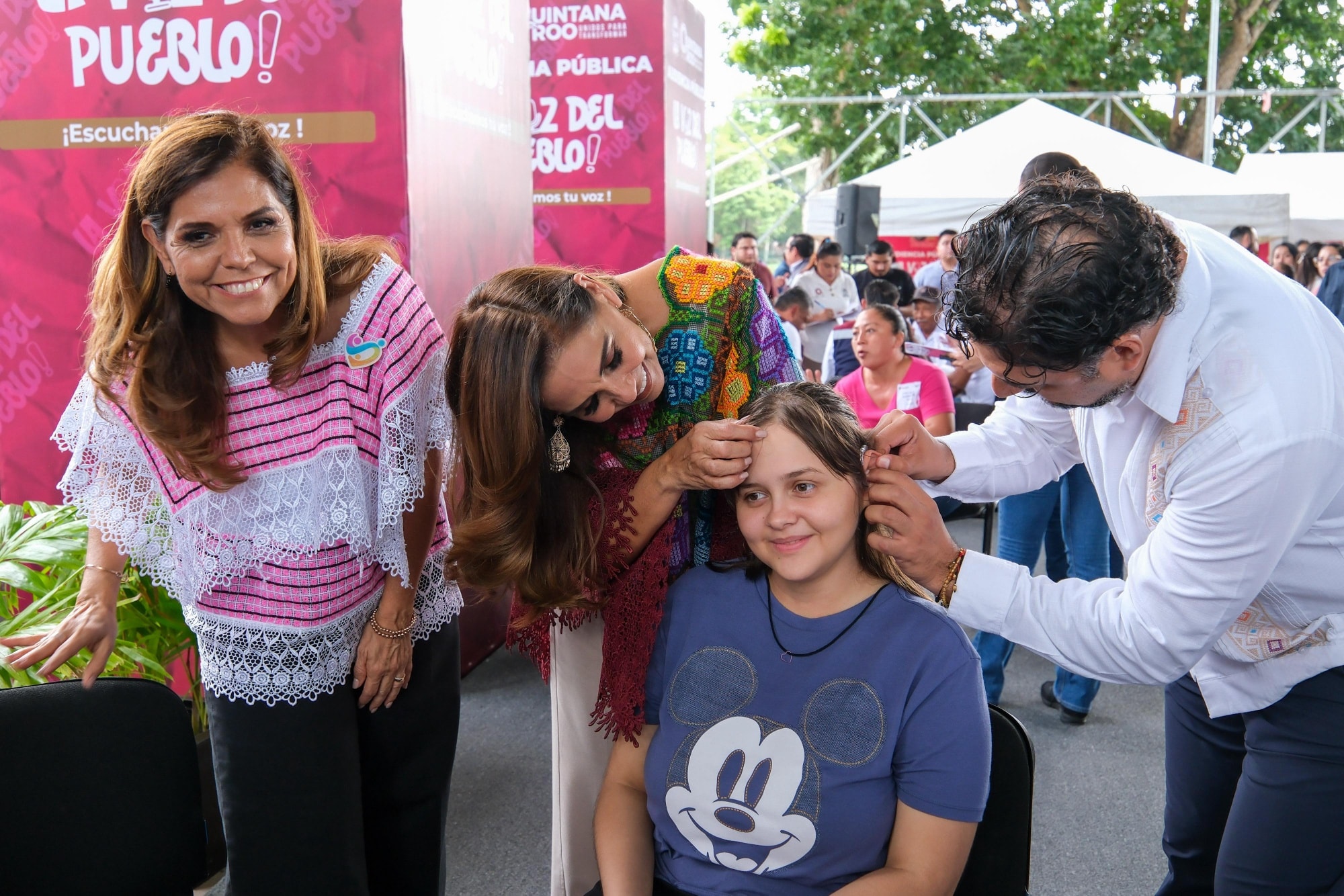 “Frida Sofía ya escucha bien con este aparato auditivo muy especializado. De esto se trata el Nuevo Acuerdo por el Bienestar y Desarrollo de Quintana Roo, que el dinero del pueblo regrese al pueblo” expresó la titular del Ejecutivo durante la colocación de estos auxiliares.