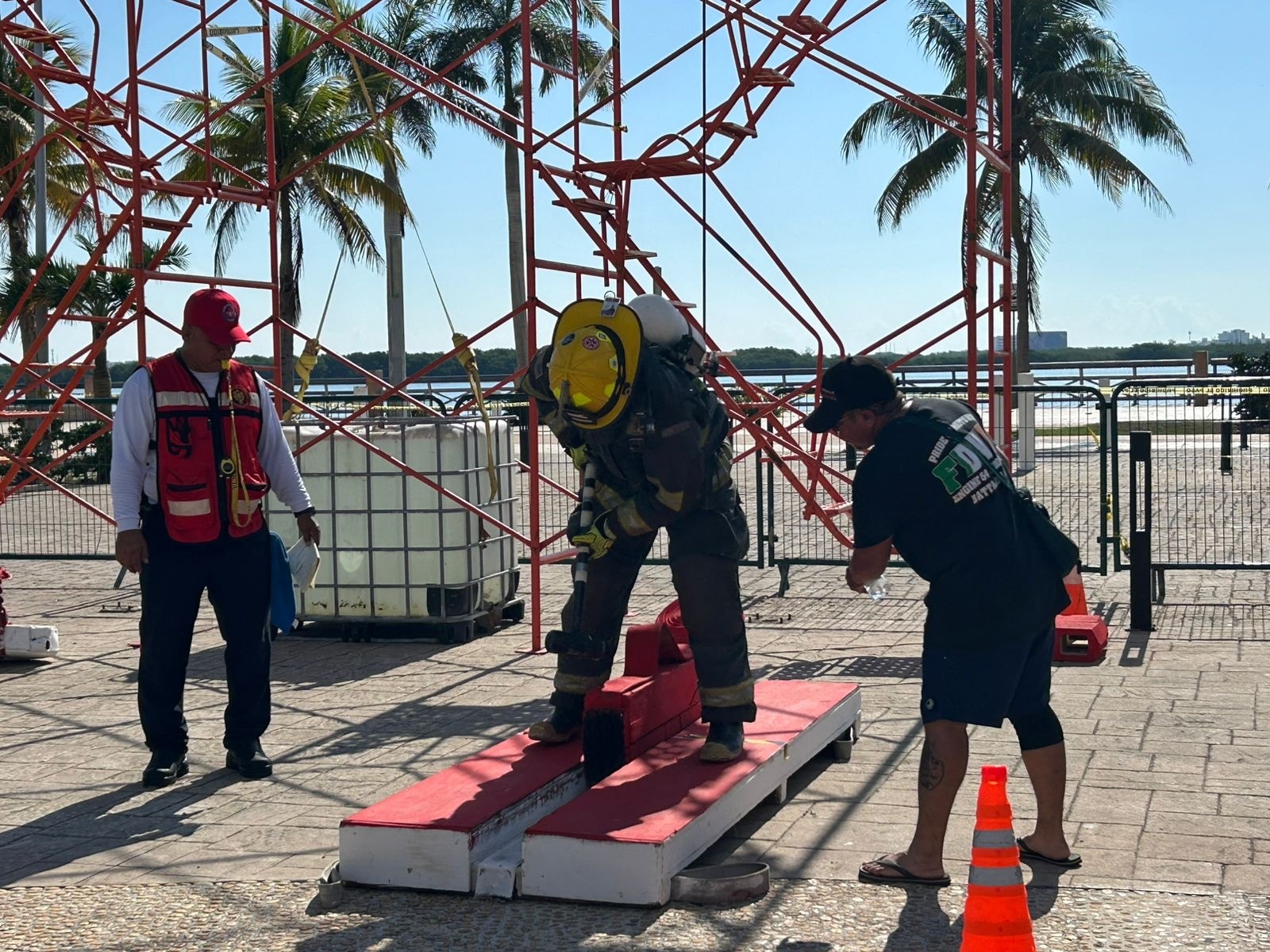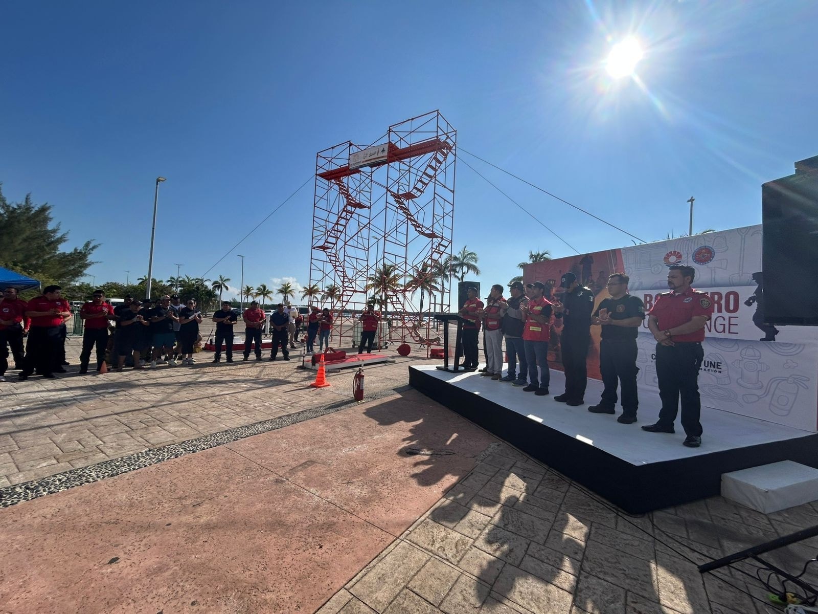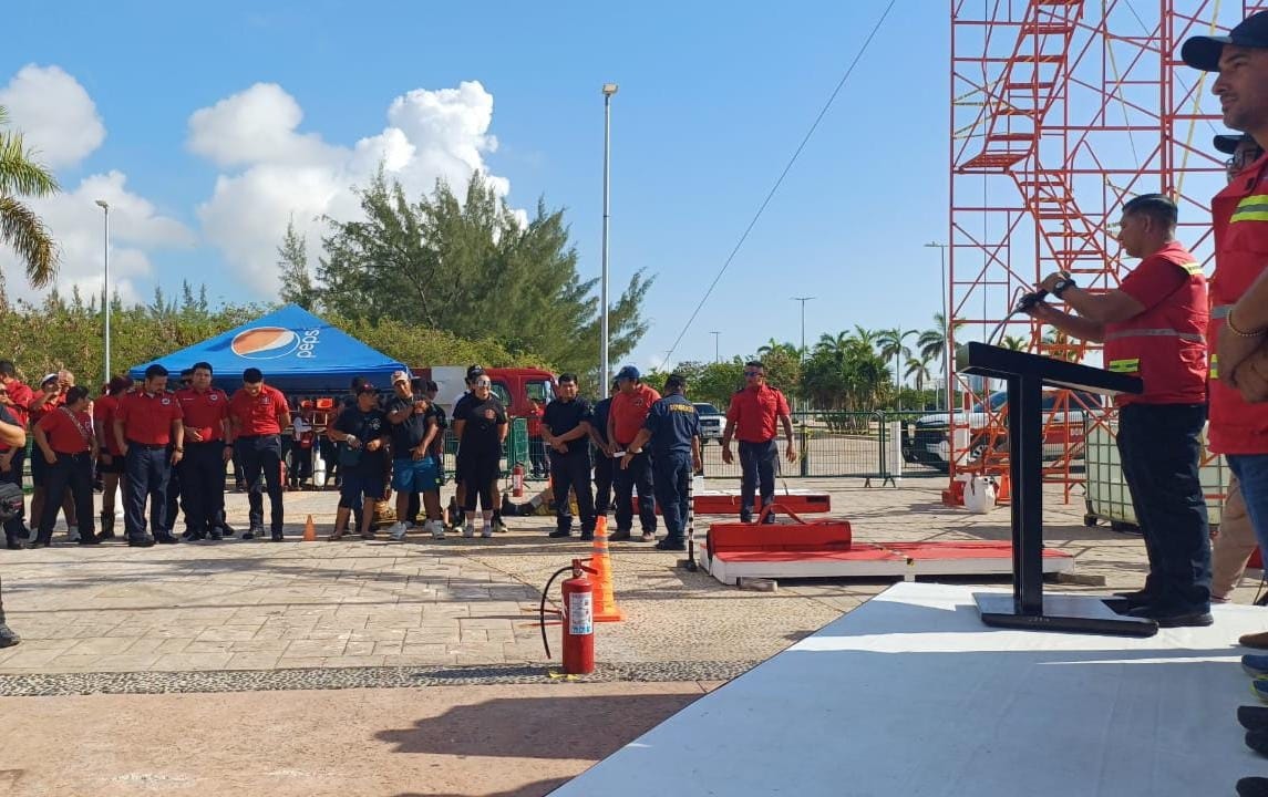 El evento, organizado por la Dirección General del Heroico Cuerpo de Bomberos, Rescate, Emergencias Médicas y Desastres, cuenta con la participación de elementos de Playa del Carmen, Lázaro Cárdenas, Isla Mujeres, Puerto Morelos y Cozumel.