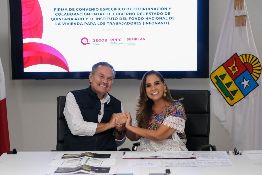 Cancún, Quintana Roo, 14 de agosto de 2025.- Luego de una reunión de trabajo con el director del INFONAVIT Octavio Romero Oropeza, la gobernadora Mara Lezama Espinosa dio una buena noticia a las y los acreditados quintanarroenses: la firma de un convenio para agilizar y simplificar la cancelación de hipotecas sin costo alguno, tengan certeza jurídica sobre su vivienda y puedan liberar su propiedad sin trámites largos ni gastos adicionales.