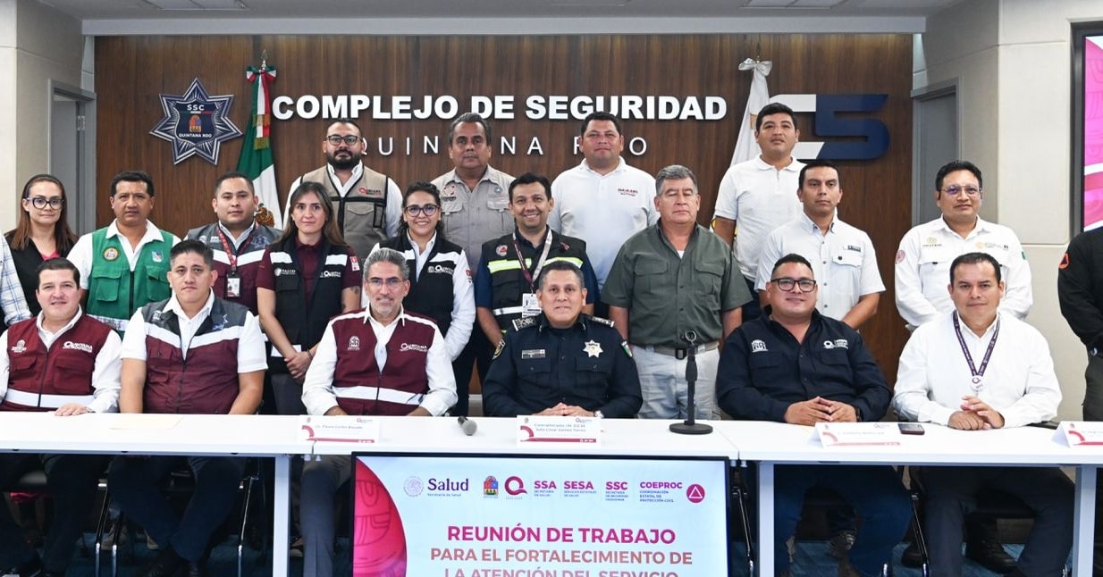 Cancún, Quintana Roo, 13 de agosto de 2025.- Con el objetivo de garantizar una respuesta rápida y eficaz ante emergencias, se llevó a cabo una reunión de trabajo para el fortalecimiento de la operatividad del Centro Regulador de Urgencias Médicas (CRUM), con la participación de autoridades estatales y municipales.