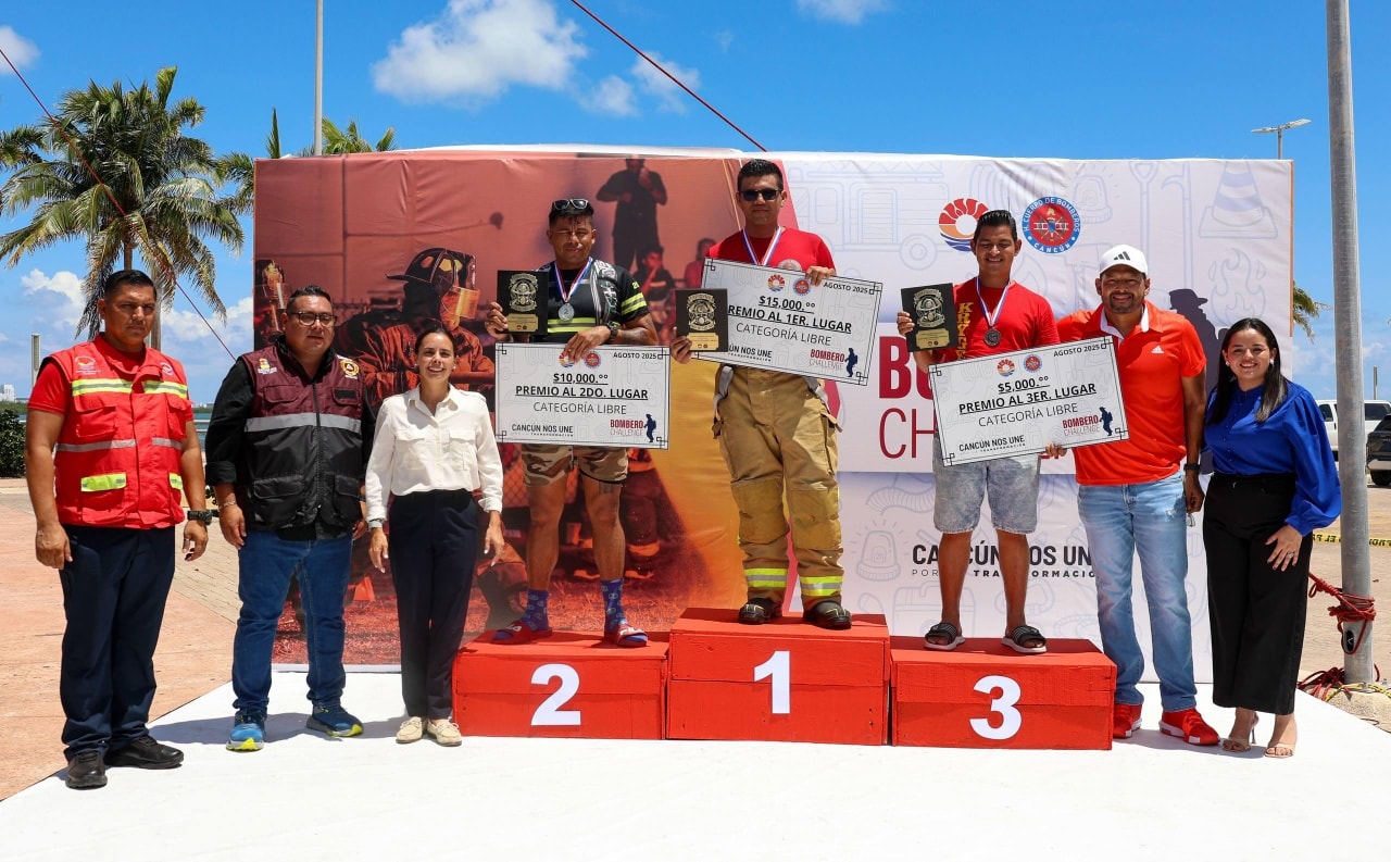 Entre los municipios participantes en el “Bombero Challenge 2025” destacan: Isla Mujeres, Puerto Morelos y Lázaro Cárdenas, siendo Cancún la sede de este importante encuentro bomberil, quienes compitieron en las categorías: Libre, Máster y Femenil, desempeñando los retos físicos de entrada forzada, arrastre de llanta, traslado de maniquí, precisión con chorro de agua, circuito zigzag de extintor, levantamiento de manguera con cuerda, escalada de pisos con manguera al hombro y arrastre de línea para chorro.