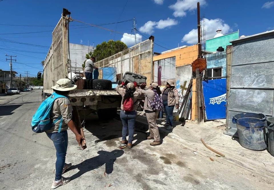 Chetumal, Quintana Roo, 14 de abril de 2025.- La Secretaría de Salud de Quintana Roo dio a conocer que, con anticipación al inicio de la temporada de lluvias y desde el inicio del presente 2025 se promueve la participación de la población en las acciones de eliminación de cacharros para mantener sus patios y azoteas libres de potenciales criaderos de moscos.