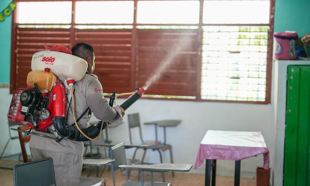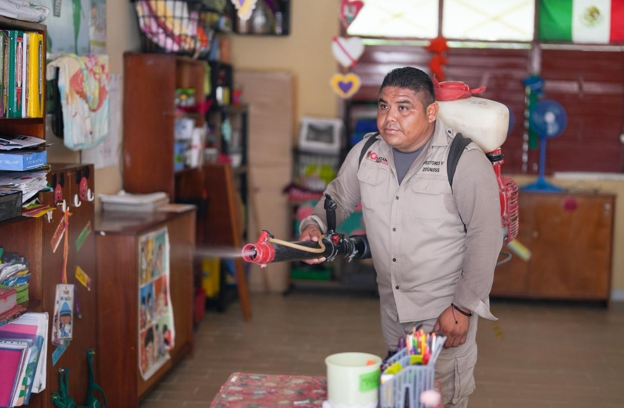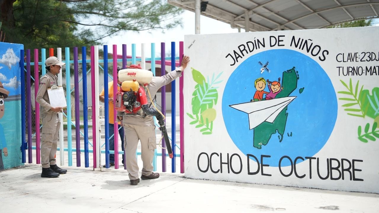 Del 13 al 21 de agosto del presente año, en coordinación con la SESA, a través de la Jurisdicción Sanitaria número 1, se realizó la fumigación en 99 escuelas de preescolar, primaria, secundaria y educación especial de Chetumal, previo al inicio del ciclo escolar 2025-2026. Estas acciones se realizan para prevenir enfermedades transmitidas por mosquitos, especialmente dengue, zika y chikungunya.